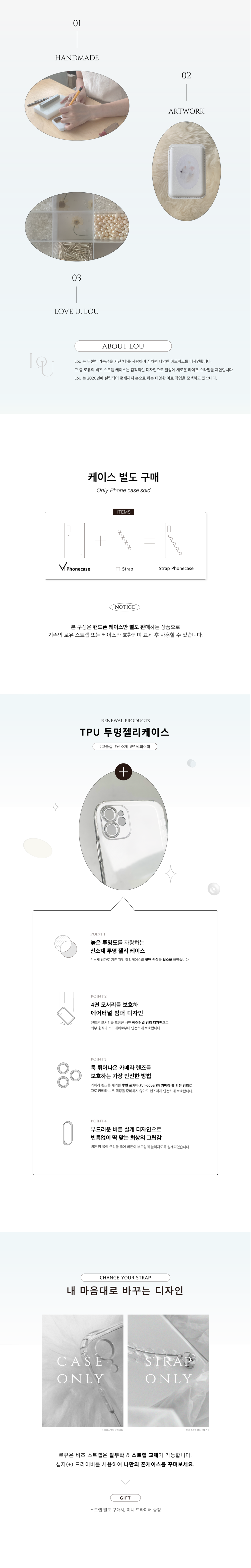 · 신소재가 첨가된 투명 케이스 → 황변현상방지 & 장기간 사용시 일어나는 변색을 최대한 늦추어 줍니다.